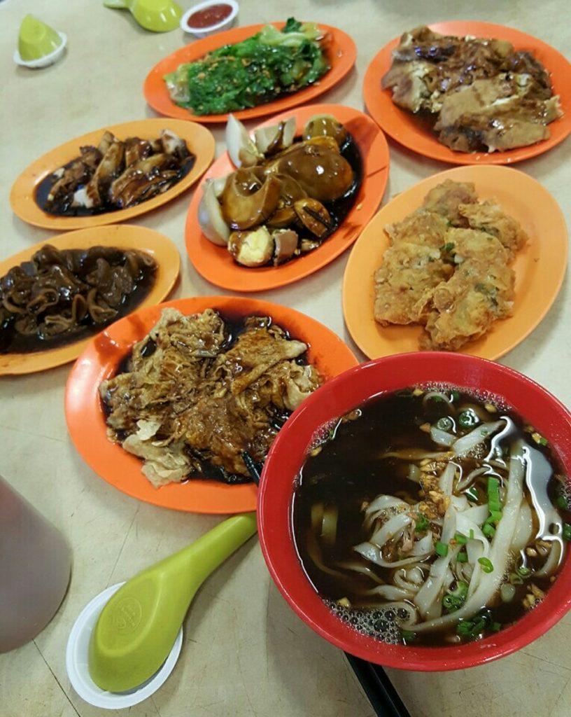 大受好评用卤汁卤出来的卤味配料有卤肉、卤耳朵、粉肠、卤猪大肠、卤蛋、卤豆腐皮、油菜心、咸菜等。粿條仔吸附了满满的汤汁,口感完全不会烂烂的、吃起来完全不会臭臭,也不用担心用筷子一夹就断。