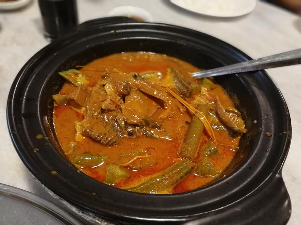 用瓦煲煮咖喱鱼头方式是让所有食材味道都融合在一起,味道不会太辣,吃过的人都会要求加饭配咖喱汁。至于盐焗鸡肉香滑,味香浓郁和皮软肉嫩。新鲜阿叁虾配上酸中带甜的阿参汁、泰式鸡、otak-otak、肉碎豆腐、咸鱼豆芽、马来风光等皆是惹味又下饭的美味佳肴。