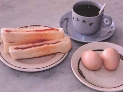 走进嶺南茶室,叫了烤面包、半生熟鸡蛋和椰浆饭,还有一杯香浓正统的咖