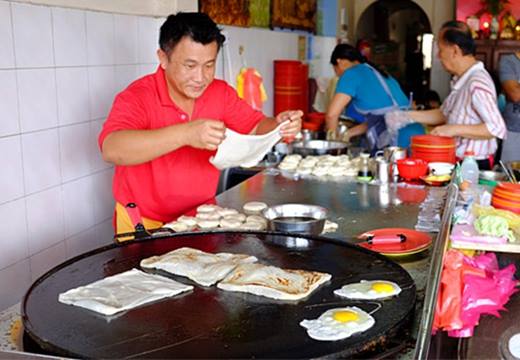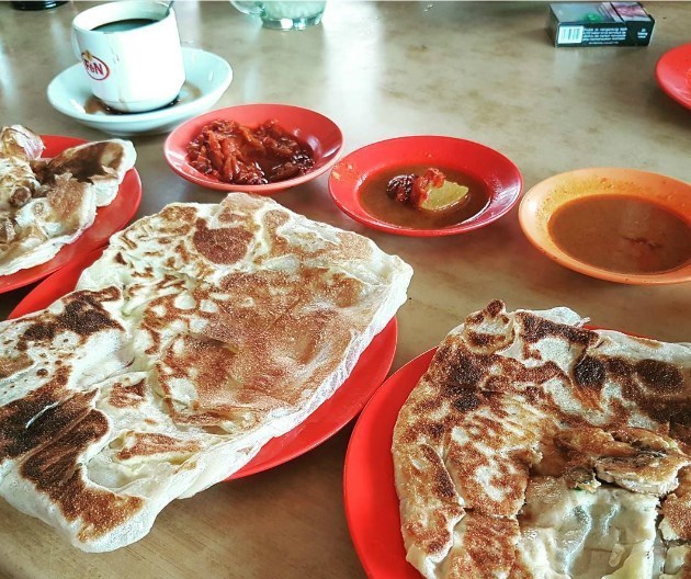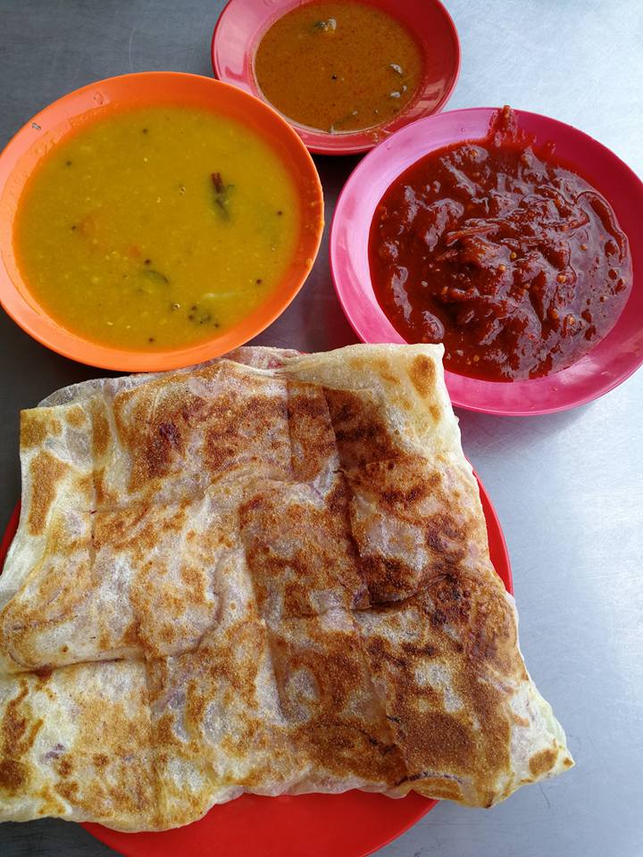 師承印度斯林的华裔老板学得一手纯熟的印度煎饼技巧,一共有6种口味,即无馅、牛油、蛋葱、沙丁鱼、豆芽和三文治煎饼,任君选择,虽然口感各不相同,但却都一样香脆酥软又弹牙,配上特制的咖哩汁,简直是绝配。
