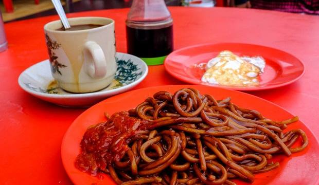 最特别是在这里还可以吃到儿时印度煎饼沾白糖的吃法, 实在令人回味无穷。浓郁经济炒面配上荷包蛋、爽脆烧烤咖椰牛油面包、顺滑半生熟蛋、香味咖啡奶茶水,大快朵颐后,美好感觉就在刹那。店内座无虚席,现场吃的人多,来打包的人更多。